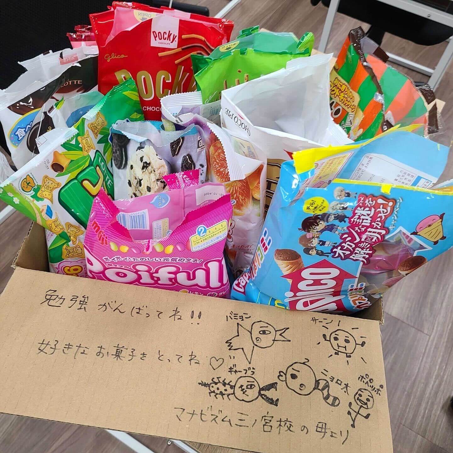 たくさんのお菓子に応援メッセージ…😋🍭🍫