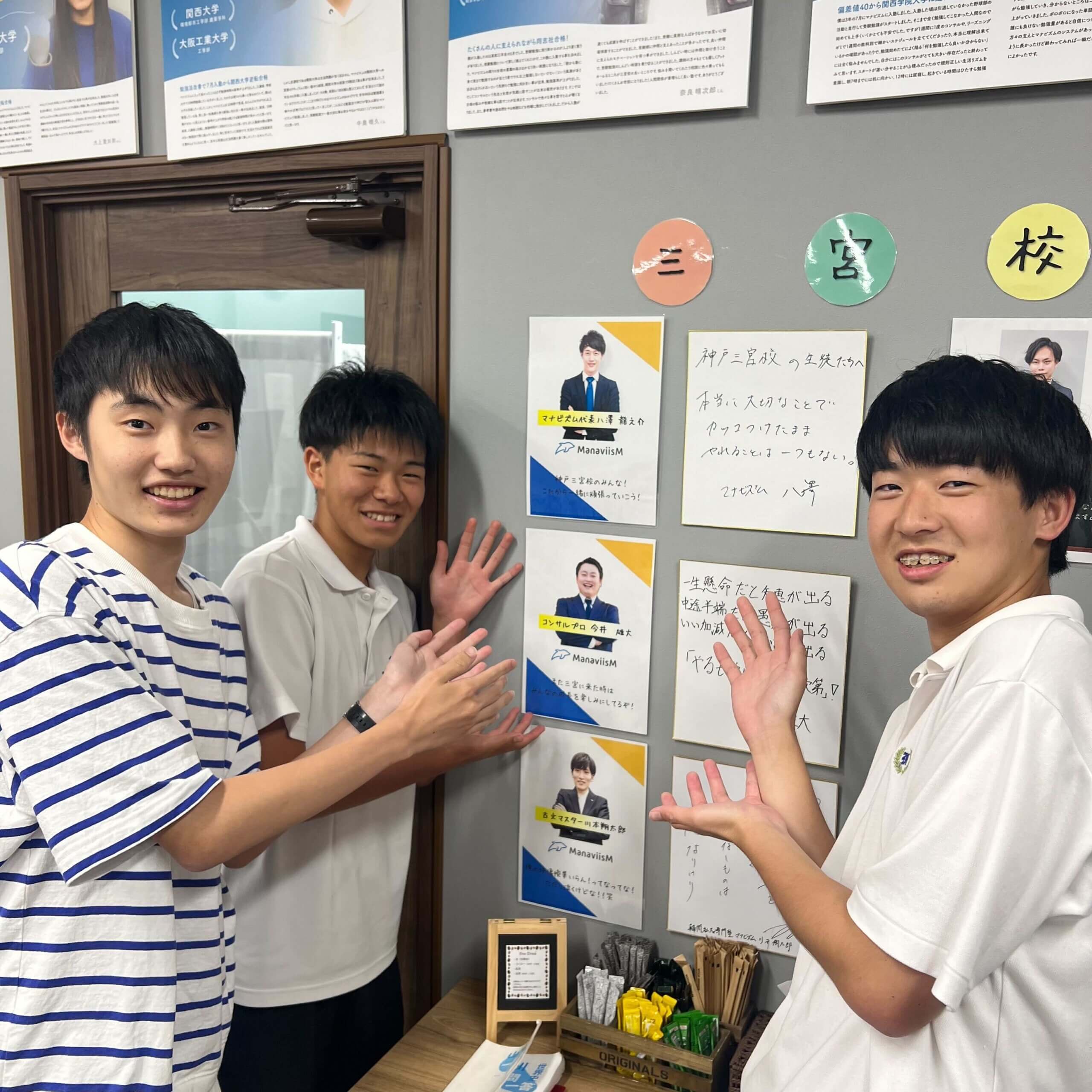三ノ宮校に飾っている今井先生の写真と一緒にピース!📸