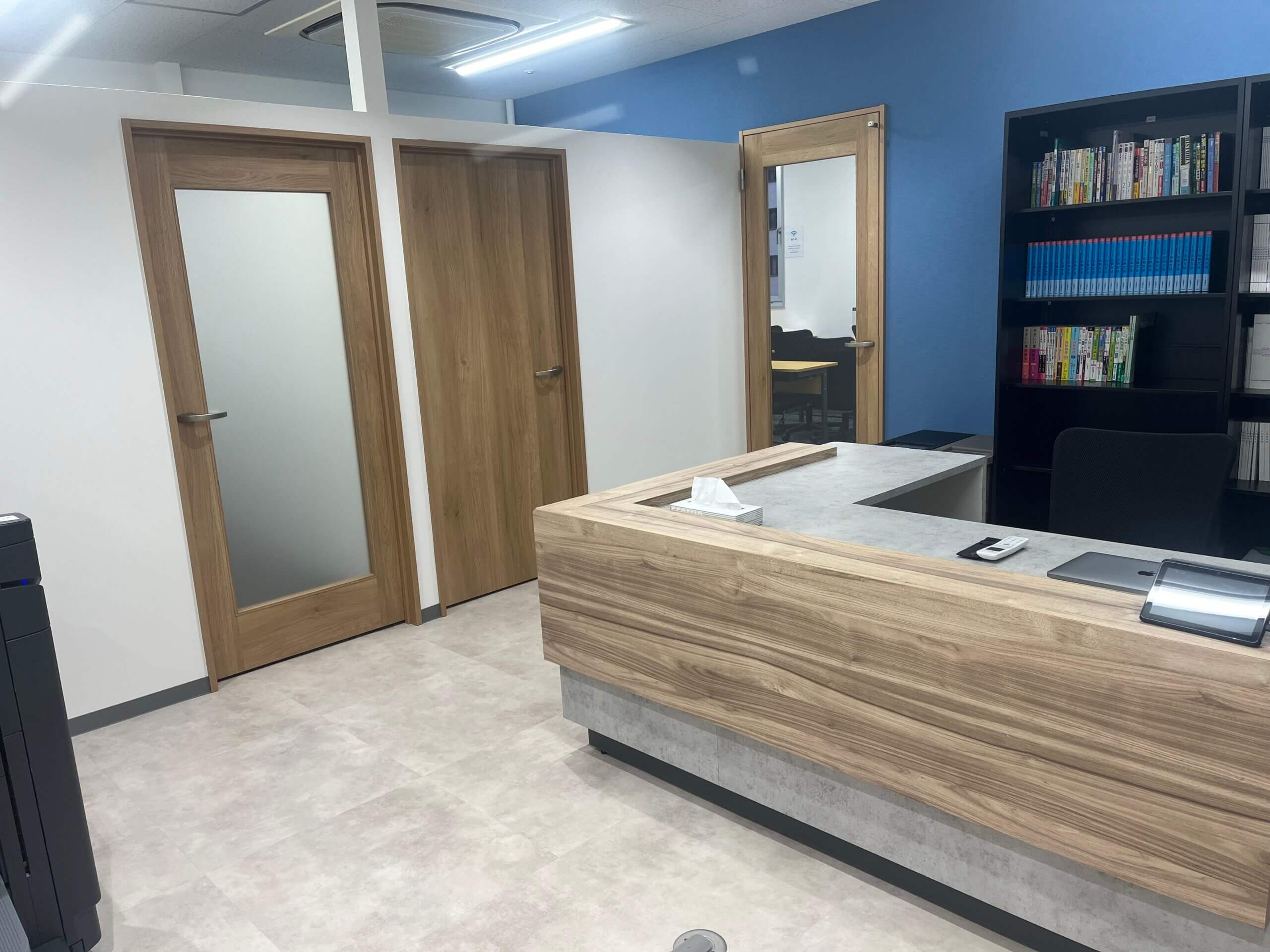 事務室の風景です。コピー機や参考書も準備されているので効率よく学習を進めることが出来ます。